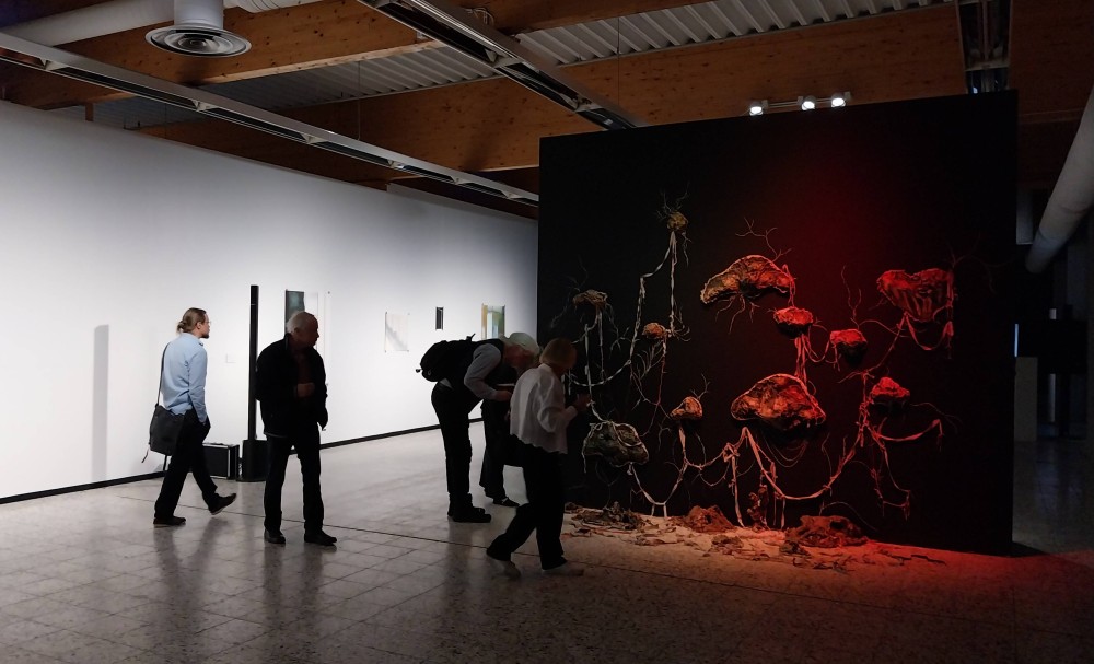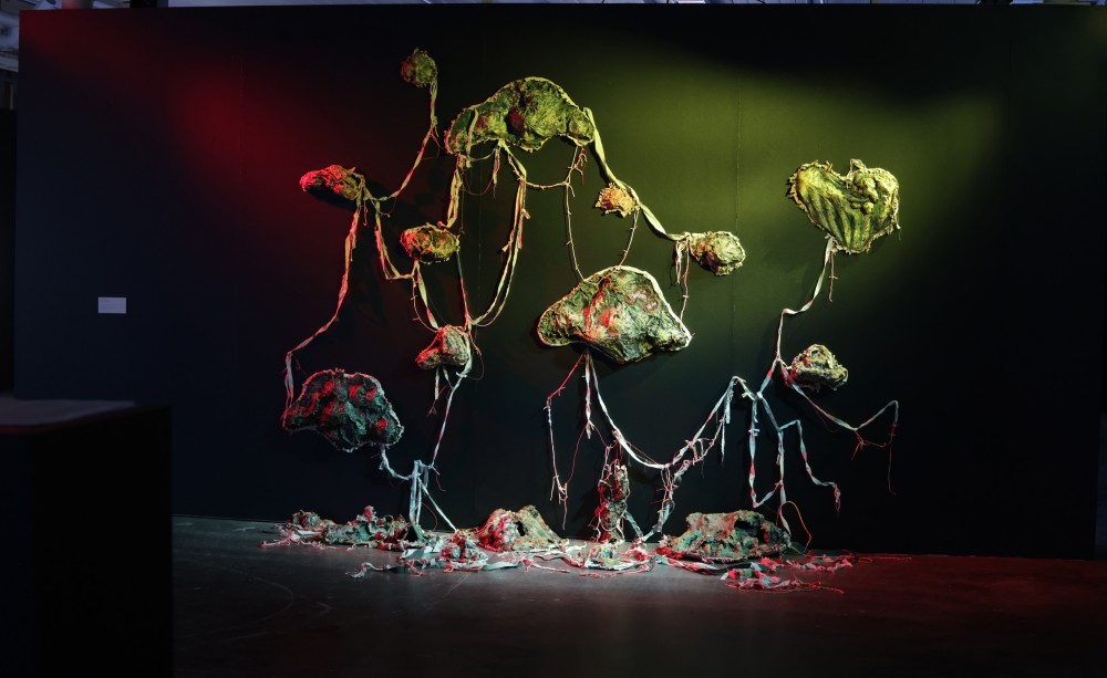Mixed Media installation, 200 x 200 x 100 cm Made from: recycled materials (cardboard, textile, paper, electric wires, makeup pigment)...
